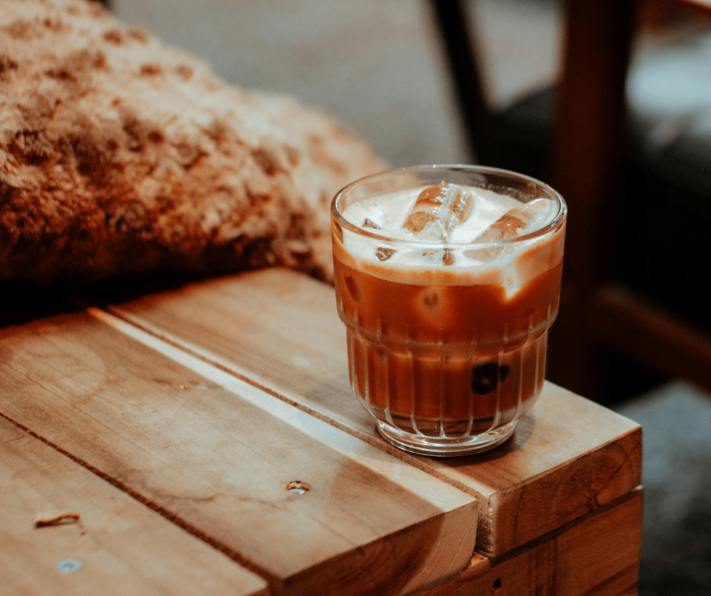 - Place ice cubes in a tall glass. Pour in milk and then coffee.